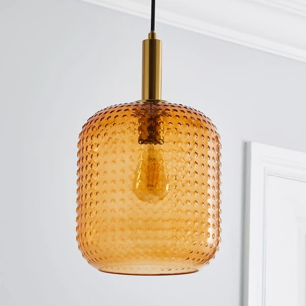 Crafted with a unique design, the Amber 1 Light Pendant Ceiling Fitting will bring a retro feel to your home. Whether it is paired with multiple Amber pieces or hung alone, this piece made from metal and glass is bound to be a statement piece that will catch the eyes of your guests, with its funky amber colourway.