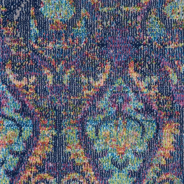 Exotic all-over design and silky sheen imbue the Ankara Global rug with an authentic vintage appeal. Graceful repeating vase patterns in beautifully ombered blue, orange and green bring an extra energy and intrigue to any room.