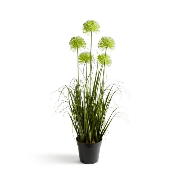 Striking and exuberant, this potted allium plant is a perfect option for making in a statement both inside your home or outside. This artificial plant requires little to no maintenance, allowing you to enjoy its beauty with ultimate ease. Completely customisable, you can keep the plant in its pot or choose to place in a planter of your choice.
