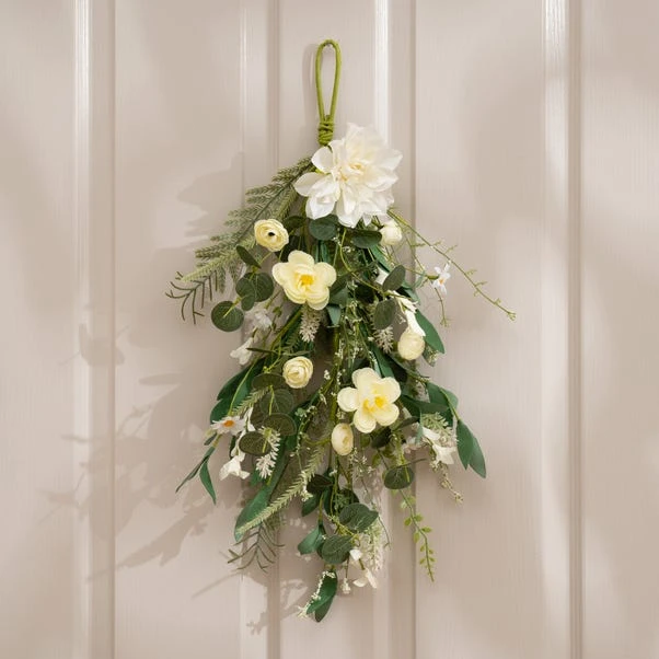 This artificial classic white swag adds a touch of timeless elegance to any space. Perfect for a front door, mantelpiece, or dining table, it brings sophistication to any setting, whether you’re celebrating a special occasion or simply enhancing your decor. Its versatile design suits a range of styles, from modern to rustic, and can be used all year round. Lightweight and low-maintenance, keep it indoors during bad weather to maintain its beauty.