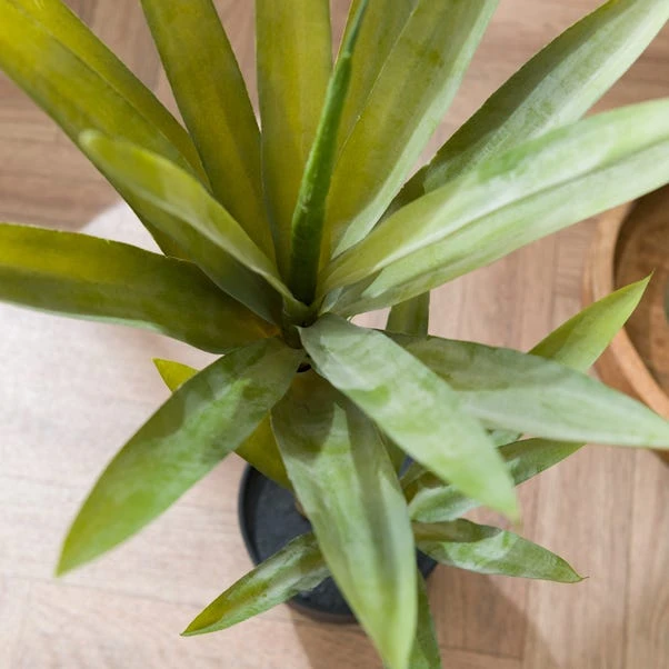 This artificial yucca plant is a great way to add natural colour and interest to your space without mastering watering requirements and re-potting. It comes with a black plastic plant pot – simply place in a decorative plant pot for a versatile décor piece.