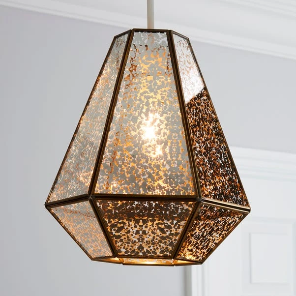 Elegantly styled in a classic diamond shape, this beautiful unwired pendant shade features distressed mercury glass finish. Suitable to use with LED lamps, this classy pendant shade is a perfect statement piece for any living space. Easy Fit pendants are ideal for a quick style change without needing an electrician. Simply assemble on to your existing ceiling fitting, and you’re good to go within minutes! Don’t forget to choose the correct bulb for your ceiling fitting.