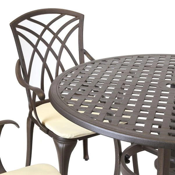 This stunning bronze dining set would be the perfect addition to any patio! Seating up to four people, this dining set is made from black cast aluminium with a stunning bronze finish. It is weatherproof, lightweight and durable, ideal for entertaining friends and family this summer!