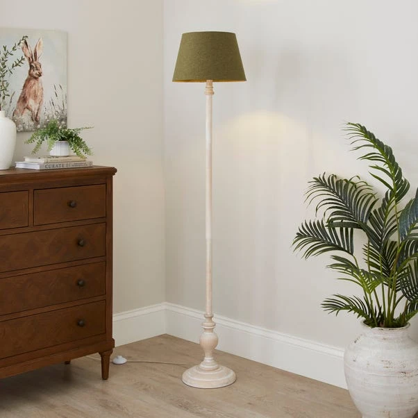 A beautiful, traditional-inspired design crafted from aged-look FSC rubberwood, this floor lamp base adds elegance to any room. The natural-coloured fabric cable enhances its rustic charm, and each piece is hand-finished, ensuring a unique touch for your home.