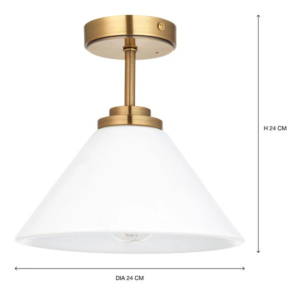Featuring an antique brass finish, this flush light adds a touch of elegance to your bathroom decor. Crafted for compatibility with a dimmable bulb, it provides versatility in setting the perfect lighting ambience to suit your mood. This light is not only stylish but also functional, suitable for use in bathroom settings. Explore the matching family items, available to purchase separately.