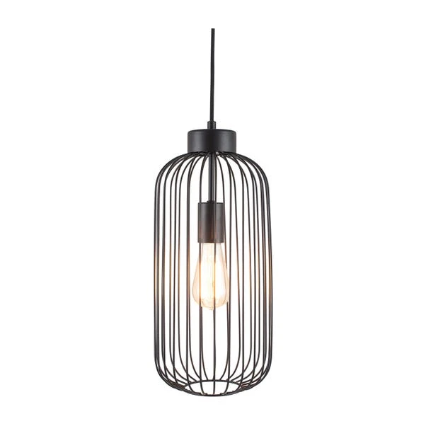 Bring this simple and effective light fitting to your space for a statement an atmospheric illumination with an industrial style. Featuring a metal wire pendant with a tall shape, the matt black metalwork creates a bold and contemporary look while the adjustable height allows this fitting to suit your space, however long or short of a drop you wish to display with.