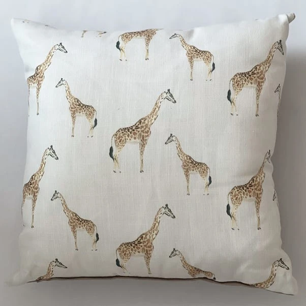 This Giraffe Multi Square Cushion offers a vibrant accent to your space with its colourful print. The 43cm cushion, made from linen-feel polyester with a contrast back panel, features luxurious recycled fabric filling and a zip-fastened removable cover, made in the UK.