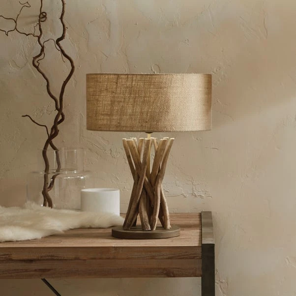 Bring the outdoors inside with The Derna Driftwood and Natural Jute Table Lamp, inspired by beachcomber aesthetics. Perfect for any room, its driftwood base and natural jute shade add a touch of coastal charm, also available as a floor lamp.