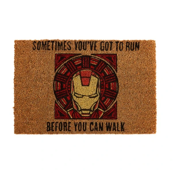 Calling at all the Iron Man fans, welcome your guests with our Iron Man Coir Doormat. Featuring a fun text of ‘sometimes you’ve got to run before you can walk’, this doormat is not only a charming welcome to your home but also built to withstand the great outdoors. Crafted from durable coir fibres with an anti-slip backing, it ensures both style and functionality at your doorstep.