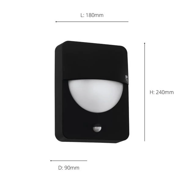 Introducing the Salvanesco – a modern outdoor wall light that’s perfect for illuminating your home’s exterior. With its sleek black cast aluminium finish and rounded white plastic diffuser, this fitting exudes contemporary style while remaining classic enough to complement any outdoor decor. With its IP44 rating, you can rest assured that the Salvanesco is designed to withstand the elements and keep your outdoor space well-lit, no matter the weather. With an integrated sensor with an impressive range of up to 8 meters and an angle of up to 110 degrees, this lighting makes a practical solution for outdoor lighting and home security.