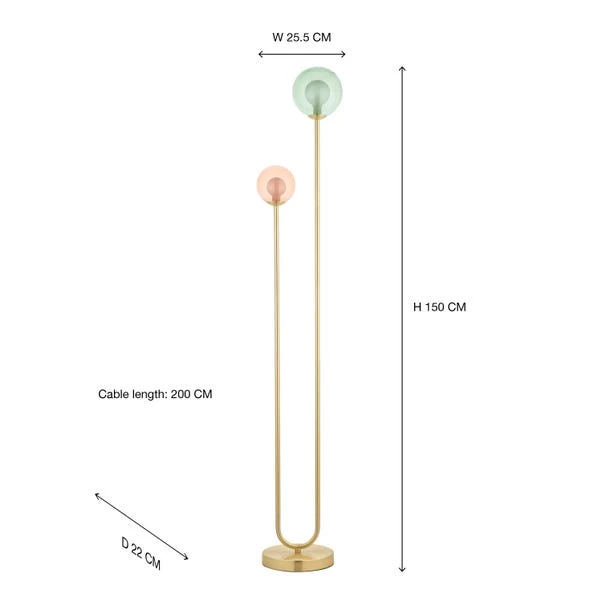 Adorned with multicoloured glass shades, this floor lamp adds a playful and dynamic element to your decor, creating a striking visual impact. The satin gold finish enhances the lamp’s elegance, striking a perfect balance between modern aesthetics and timeless allure. The in-line foot switch provides convenient control over the illumination, while the generous 2m cable ensures flexibility in placement. Coordinate with the matching family items available to purchase separately.