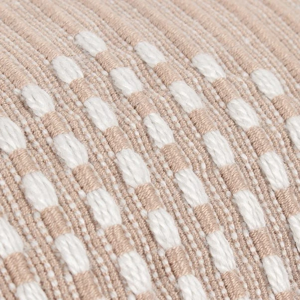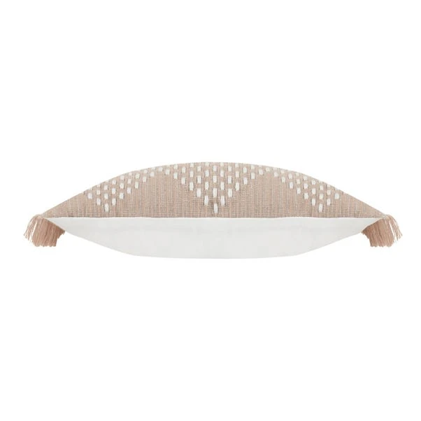 This furn. Kadie Rectangle Cushion features a woven geometric design crafted from durable, recycled PET fabric. Complete with a polyester reverse and fringed trim, this weatherproof cushion is suitable for both outdoor and indoor use, making it a versatile choice.