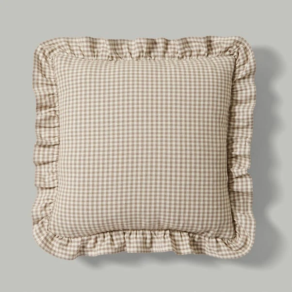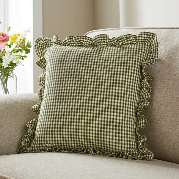 Add a playful twist to your décor with our Gingham Frill Cushion Cover. The on-trend gingham design, coupled with a charming frill edge finish, offers a touch of cottagecore sophistication. Made of 100% cotton and machine washable, this cover promises comfort, style, and practicality.