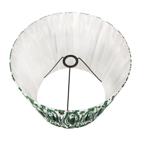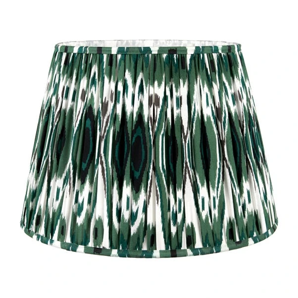 The Izara Ikat Patterned Gathered Tapered Shade showcases a stunning Ikat pattern in vibrant colours, adding a bold statement to your lamp. Crafted from cotton and available in various sizes, it’s a show-stopping addition to any room.