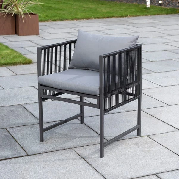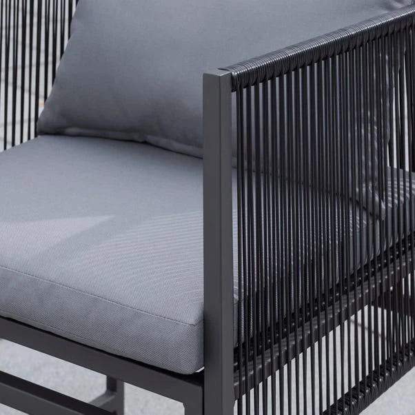 Gather friends and family around for meals al fresco with this beautiful four-seater outdoor dining set! Crafted from high-quality powder-coated steel and rattan, this set is perfect for enjoying a meal in the sun. Plus, the glass top makes cleaning up after dinner simple and stress-free.