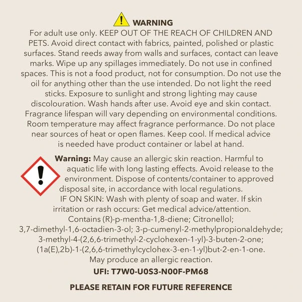 Transform your space with the delicate fragrance of peony, beautifully blended with jasmine, orange flower, and rose, and grounded by warm amber, moss, and sweet honey. Housed in a sleek clear glass bottle, this diffuser makes an elegant statement on tables or sideboards while filling your home with a luxurious aroma. Complete with seven white fibre reeds and a replacement set, it offers ease of use and long lasting fragrance. With an impressive 1000ml capacity, this diffuser lasts up to 80 weeks – perfect for creating a welcoming atmosphere, and both a decorative and functional addition to your home.
