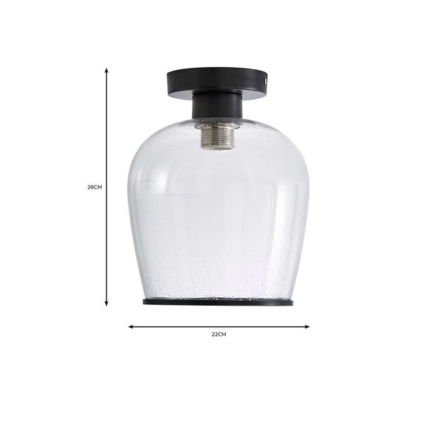 The Lenny Flush Ceiling Fitting has been beautifully designed with bubbled glass and a modern black trim for a contemporary appearance. The Lenny Flush Fitting Light is the perfect piece for adding a classic look to your home with a modern twist. Perfect for lighting hallways or any other room in your home. This piece is dimmable compatible with matching items available, making it easy to create a coordinated look in any room.