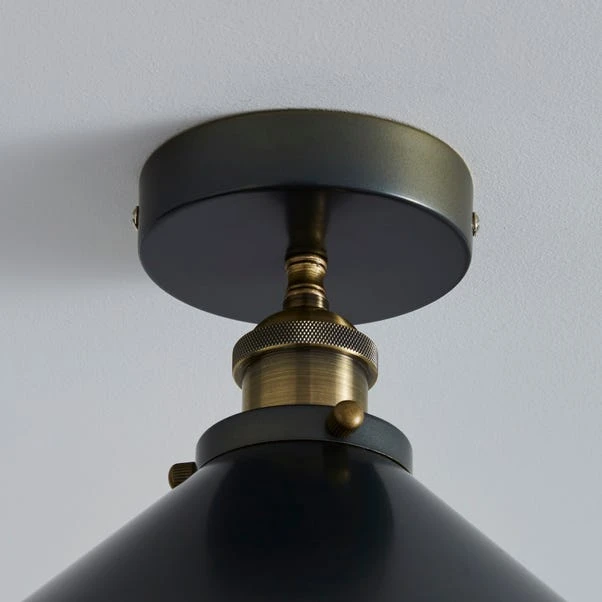 Introduce a contemporary element to your interior with the beautiful Logan Flush Ceiling Light, stylishly crafted with a dark nickel colourway and painted gold in the inner part of the shade for the best light output. A perfect way to add a modern and rustic touch to your décor.