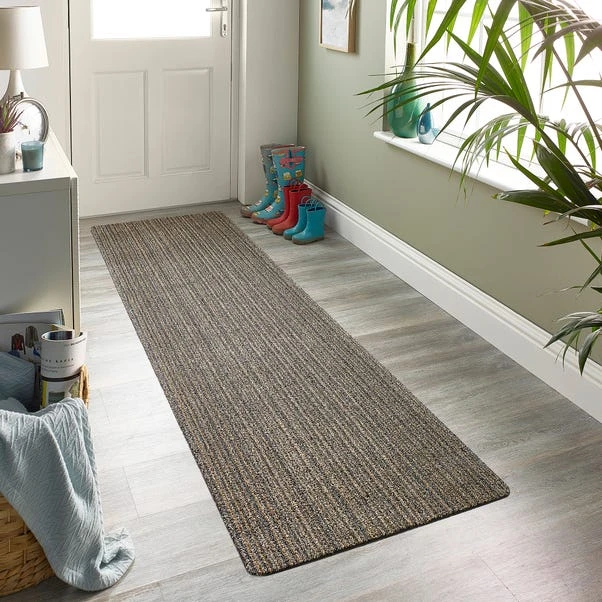 Trap dirt, dust and mud at the door with our super absorbent runner, made partially from recycled materials. It offers a unique material composition to help reduce noise and echo, whilst ensuring it stays in place, with a robust anti-slip backing. This scratch resistant runner is made in the UK and is machine washable on a low temperature.