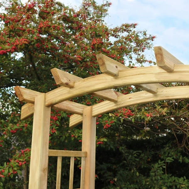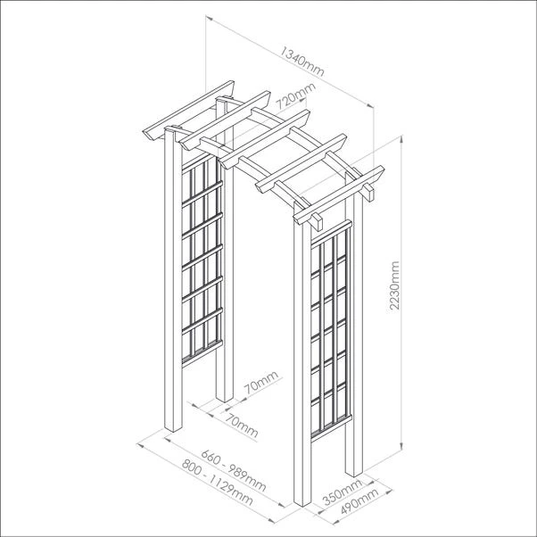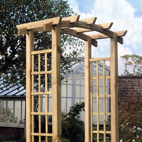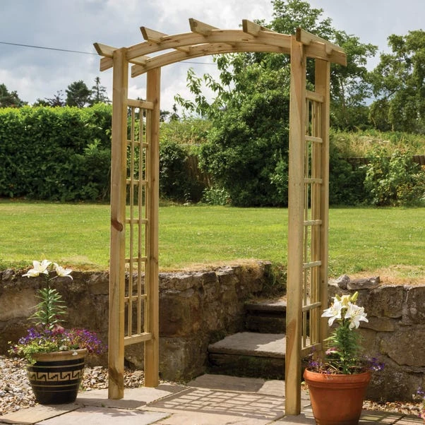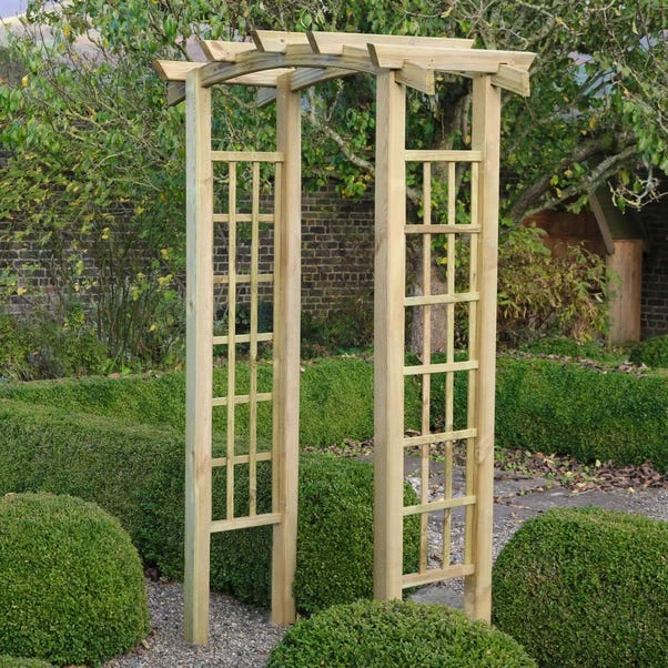 One of the most popular arches in the Zest collection, the Moonlight Arch encompasses a subtly curved rafter with delicate square trellis side panels. Standing at 2. 23m, the arch’s natural wood will enhance your garden walkway and has an adjustable width of up to 1. 34m.