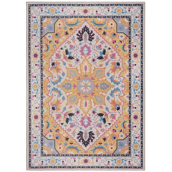 Transform your home with the timeless beauty of the Orla Traditional washable rug. Its intricate floral print, luxurious golden tones, and soft machine washable fibers make it a perfect fit for both traditional and modern homes. Whether it’s the living room, bedroom, or even the messiest rooms like the kitchen and bathroom, this washable rug will add a touch of class.