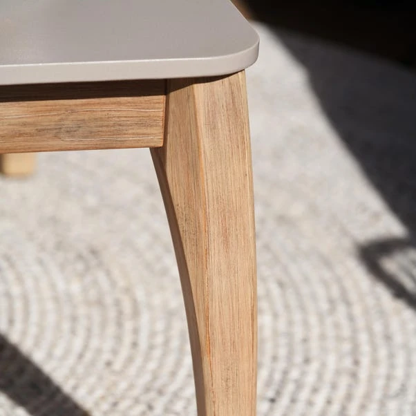 Made from sustainable acacia wood, the set includes a coffee table with a cement-coloured polystone top, along with lounge seating featuring latte polyrope weave and light linen natural oatmeal cushions. Olefin fabric ensures the cushions are quick-drying, stain-resistant, and fade-resistant. Designed for low-maintenance luxury, this set is perfect for long-lasting outdoor relaxation. With a 3-Year Structural Guarantee, it’s a great addition to your garden. Don’t forget to use an Aerocover for protection.