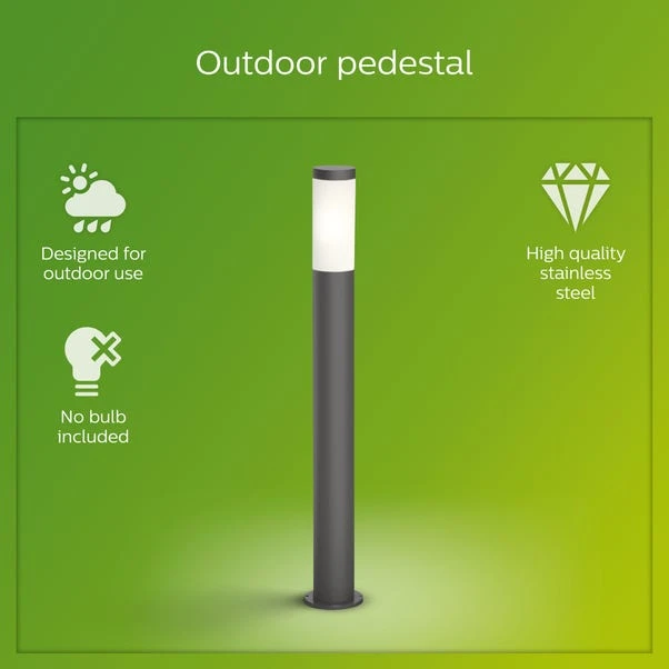 The Philips Uthrecht Integrated LED Outdoor Post Light will help light up your outdoor space and give your garden some added style. Designed for use in any weather conditions, this high-quality post light features a weatherproof IP44 rating, ensuring it will withstand the elements. Crafted from premium stainless steel and superior synthetics, this post light adds both style and function to your garden. Simply install it and enjoy the beautiful, warm glow of the LED light.