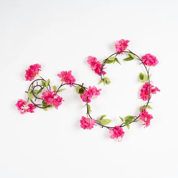 Add a pop of vibrant fuchsia pink to any occasion with this set of two stunning artificial blossom garlands. Each measuring 180cm in length, these eye-catching pieces offer the beauty of fresh flowers without the upkeep. Perfect for weddings, parties, or simply brightening up your home, their bold colour instantly lifts any space. Lightweight and flexible, they’re easy to hang or drape wherever you desire, from arches to banisters or even table centrepieces. Designed to bring lasting colour, they require no maintenance and create a warm, welcoming atmosphere. Just remember to bring them indoors during adverse weather.