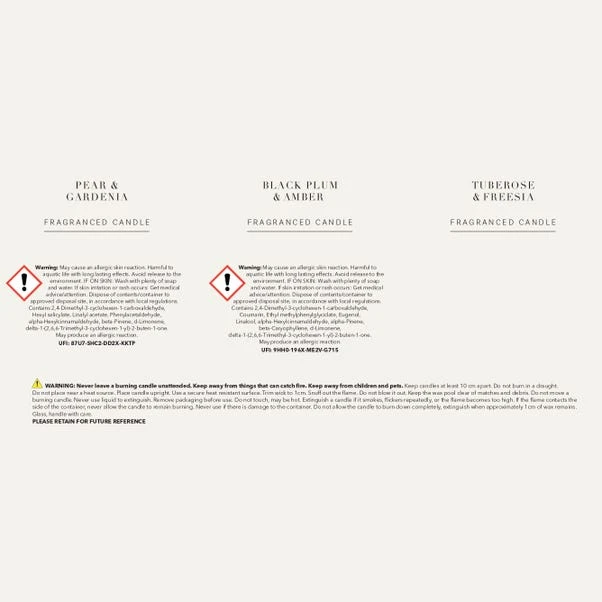 - Includes Pear & Gardenia, Plum & Patchouli, and Tuberose & Freesia Fragrances