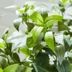 Artificial White Bay Tree With Floral Base In Square Black Plastic Plant Pot