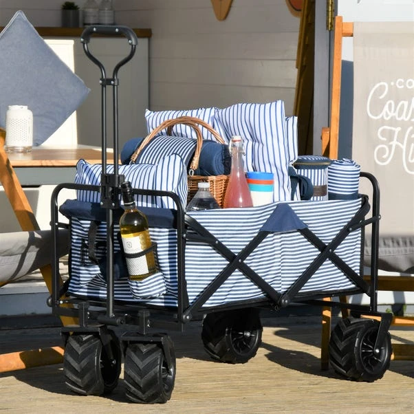With 4 oversized wheels, this XL wagon is the go-anywhere cart that will make light work of transporting all your gear without the need for stretched limbs and sore backs. It opens and folds away in seconds, making it easy to pop in your car and keep on hand for any outdoor event. Made with a steel frame and a polyester lining, it’s easy to wipe clean after use. Coordinate it with other products from the Three Rivers picnic range for the ultimate outdoor experience.