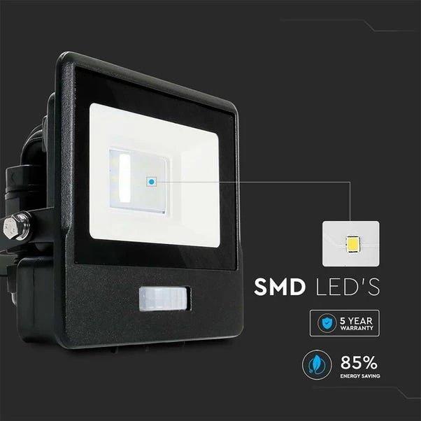 Upgrade your outdoor lighting with the V-TAC 10W LED Floodlight Outdoor PIR Sensor Wall Light, featuring advanced Samsung LEDs and an integrated PIR sensor for enhanced security and efficiency. This high-quality slim series floodlight provides effective lighting and is designed to detect motion within a 3 to 10-meter radius. Its PIR sensor includes a manual override function, allowing you to switch between sensor mode and constant lighting mode for versatile usage.