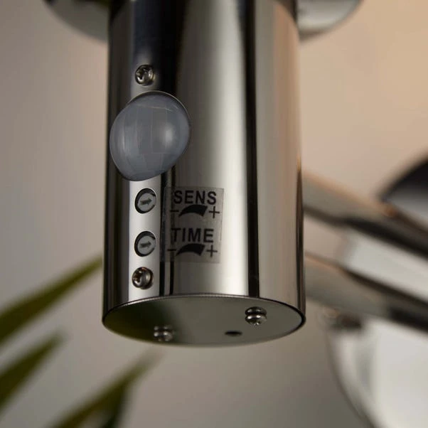 Featuring the sleek, clean, and classic louvered style of the Pheonix Outdoor Wall Light, this modern piece of lighting comes complete with a built in PIR sensor as well as mains operated functionality for ease of use and a IP44 rating to ensure outdoor suitability. The polished stainless-steel construction offers a fresh and clear look and can be combined with other items of outdoor lighting in the Pheonix range for a synchronised and coordinated look.