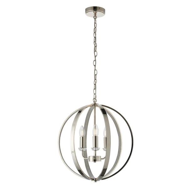 Boasting a modern open frame design, this dimmable ceiling light is perfect for adding a stylish touch to any room. With a bright nickel plated finish this light is modern and is also encrusted with thousands of clear faceted reflective detailing. This ceiling light fitting has an adjustable height and is perfect for use with E14 LED lamps.