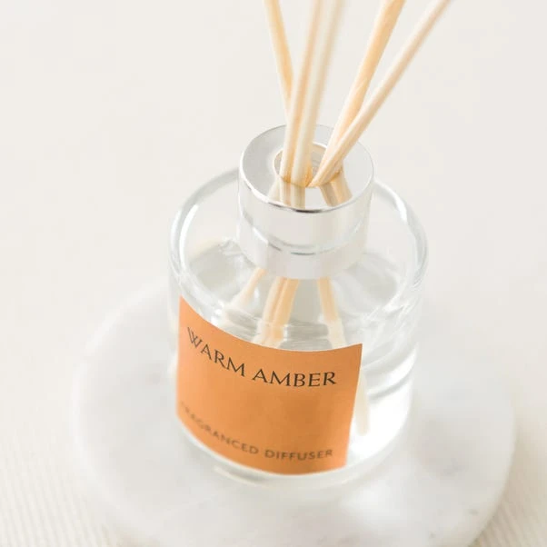 Fill your home with the inviting, luxurious scent of golden amber, cedarwood, and sandalwood, brightened by notes of bergamot and mandarin. Perfect for creating a cosy atmosphere, this diffuser lasts up to 9 weeks for the 90ml size or 3 weeks for the 30ml. The sleek clear glass vessel effortlessly complements any décor, while the natural reeds ensure a steady release of fragrance. Ideal for living spaces, bedrooms, or hallways, it’s a simple way to bring warmth to your home. A thoughtful gift or a treat for yourself, it’s a must-have for those who love luxurious scents.