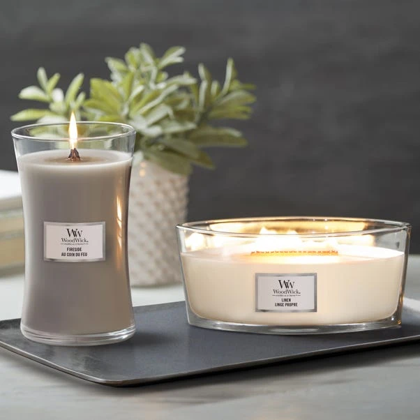 Refresh your senses with Woodwick’s Linen Scented Candle bringing crisp scents for an uplifting aroma. The Ellipse candles feature natural wooden wicks that fill your space with up to 50 hours of delightful notes, featuring top layers of sparkling aldehydes, lemon zest, fresh squeezed orange and green apple, mid layers of lily of the valley, wild freesia, sweet jasmine and ylang-ylang and sit upon a base of cedarwood, sandalwood, patchouli, oakmoss and musk. Creating a multi-sensory experience that adds a personal and elegant finish to your home is part of Woodwick’s design and their exclusive and patented Pluswick innovation creates the sound of crackling fire when burning. Once you’ve come to the end of your candle experience and it’s empty, why not give it a new lease of life by cleaning the empty jar and upcycling it for effective storage full of style and practicality?