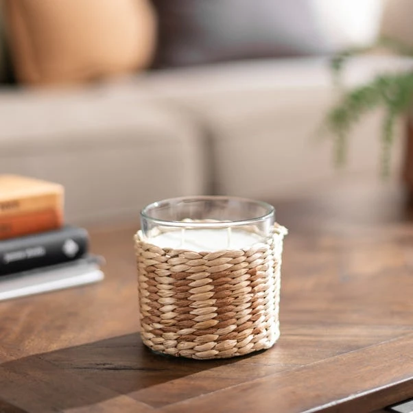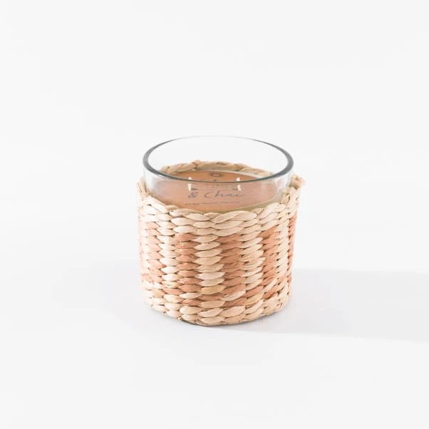 This unique candle vessel features a beautiful natural woven design, adding a boho touch to any room. The colours and unusual woven finish capture attention, making it a standout piece in your décor. With a fruity fragrance of citrus and tropical notes like mango, lemon, bergamot, and lime, the scent sparkles with hints of chai, creating a refreshing atmosphere. The glass vessel houses a multi wick candle for an even burn, offering up to 30 hours of delightful fragrance. Perfect for brightening up your space, this candle combines style and sensory indulgence. A must-have for those who appreciate both aesthetic appeal and a warm, inviting scent.