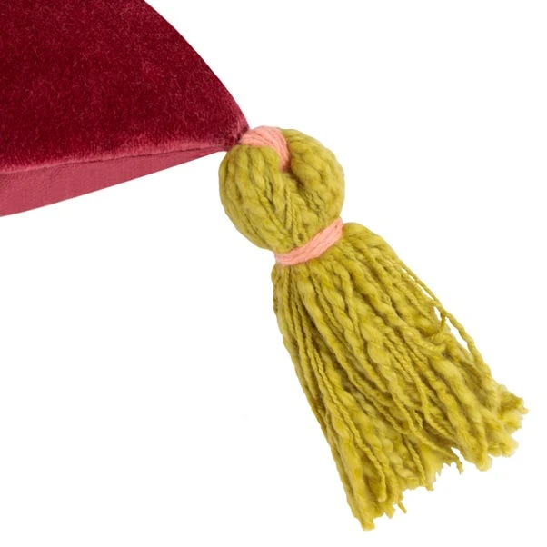 Transform your space with the whimsical charm of the Wylder Magic Mushrooms Square Cotton Cushion Cover. Intricately embroidered mushrooms, fungi, and leaves adorn a soft red velvet fabric, while a plain cotton reverse and tasselled trim complete the design.